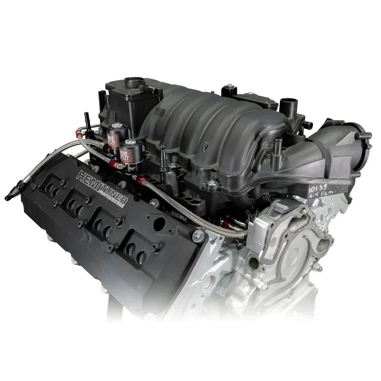 The 5.7, 6.1 & 6.4L Hemi Intake spacer nitrous plates are designed to support horsepower gains between 130 to 400 horsepower. CNC machined billet aluminum with fiber intake gaskets, Jet fittings for nitrous and fuel are easily accessed at the front and the back of the spacer plates. These intake spacer plates will add ½” to the intake height.