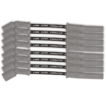 To accomplish this, we use a copper alloy conductor due to it's great voltage carrying capabilities. The low resistance results in less loss in spark energy so more reaches the spark plug. The conductor is wound extremely tight around a special center core. So tight in fact, that there is over 40 feet of conductor wrapped into a single foot of plug wire. This winding procedure, combined with a ferro-magnetic impregnated center core, produces an extremely effective Electro Magnetic Interference (EMI) "choke". This choke, or suppression capability, keeps the EMI inside the wire where it cannot interfere with other electronics on your vehicle. The outer sleeve that surrounds the conductor assembly is just as impressive. A proprietary blend of silicone and synthetic material produce a sleeve that is highly resistant to high heat as well as abrasion and tears.