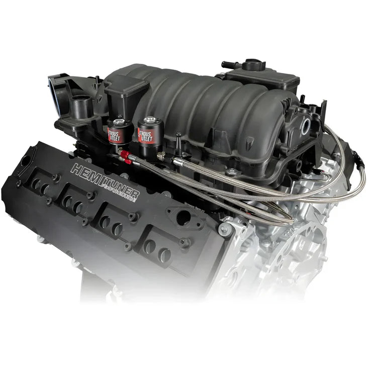 The 5.7, 6.1 & 6.4L Hemi Intake spacer nitrous plates are designed to support horsepower gains between 130 to 400 horsepower. CNC machined billet aluminum with fiber intake gaskets, Jet fittings for nitrous and fuel are easily accessed at the front and the back of the spacer plates. These intake spacer plates will add ½” to the intake height.